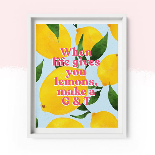 'When Life Gives You Lemons, Make a G&T' Art Print A4/A3