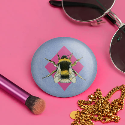 This cute bumble bee pocket mirror will brighten up any make up pouch! With an adorable bee illustration on the front, this mirror is perfect for on-the-go touch-ups. Look your best wherever you go with this handy and adorable accessory!