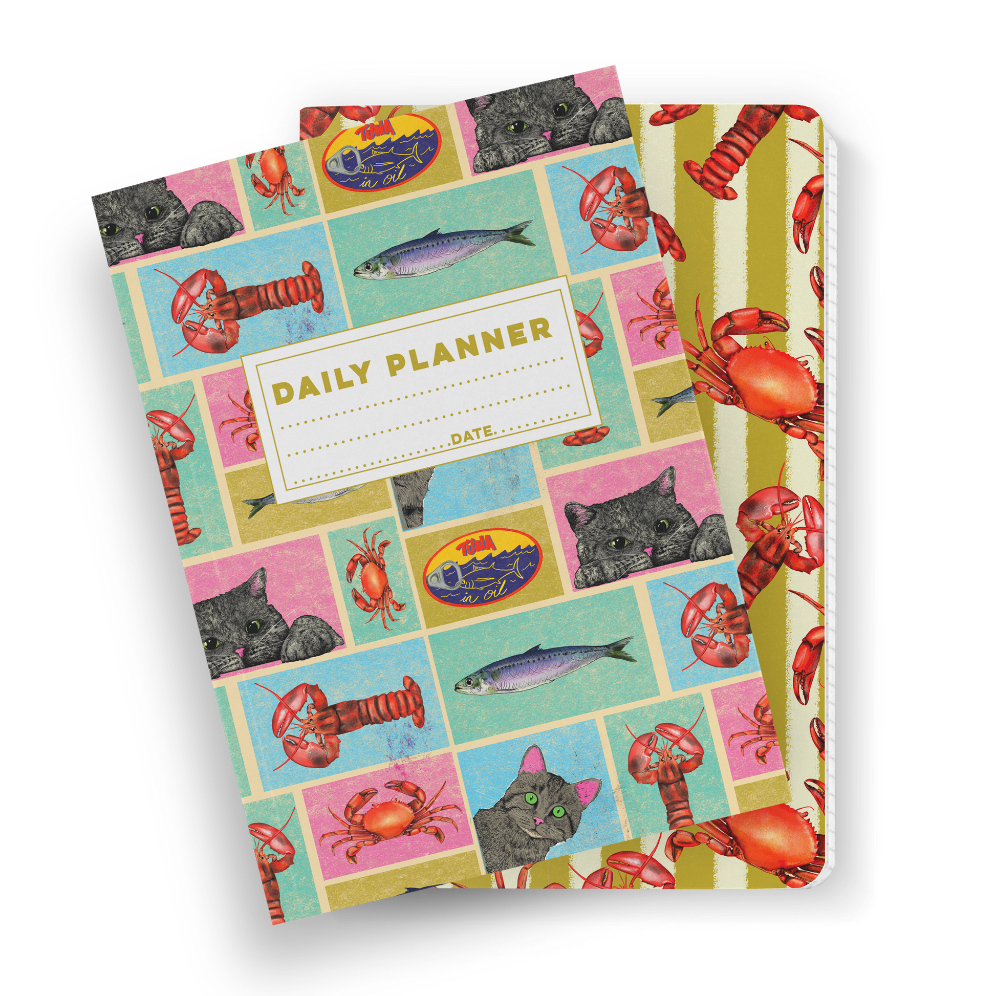For anyone whose cat demands dinner before you’ve even had your coffee, the Kitties’ Kitchen Daily Planner is the purrfect companion. Inspired by the playful chaos of feline mealtimes, this A5 planner features a colourful grid of tuna tins, sardines, lobsters, crabs, and mischievous cats — all ready to help you plan your day in style.