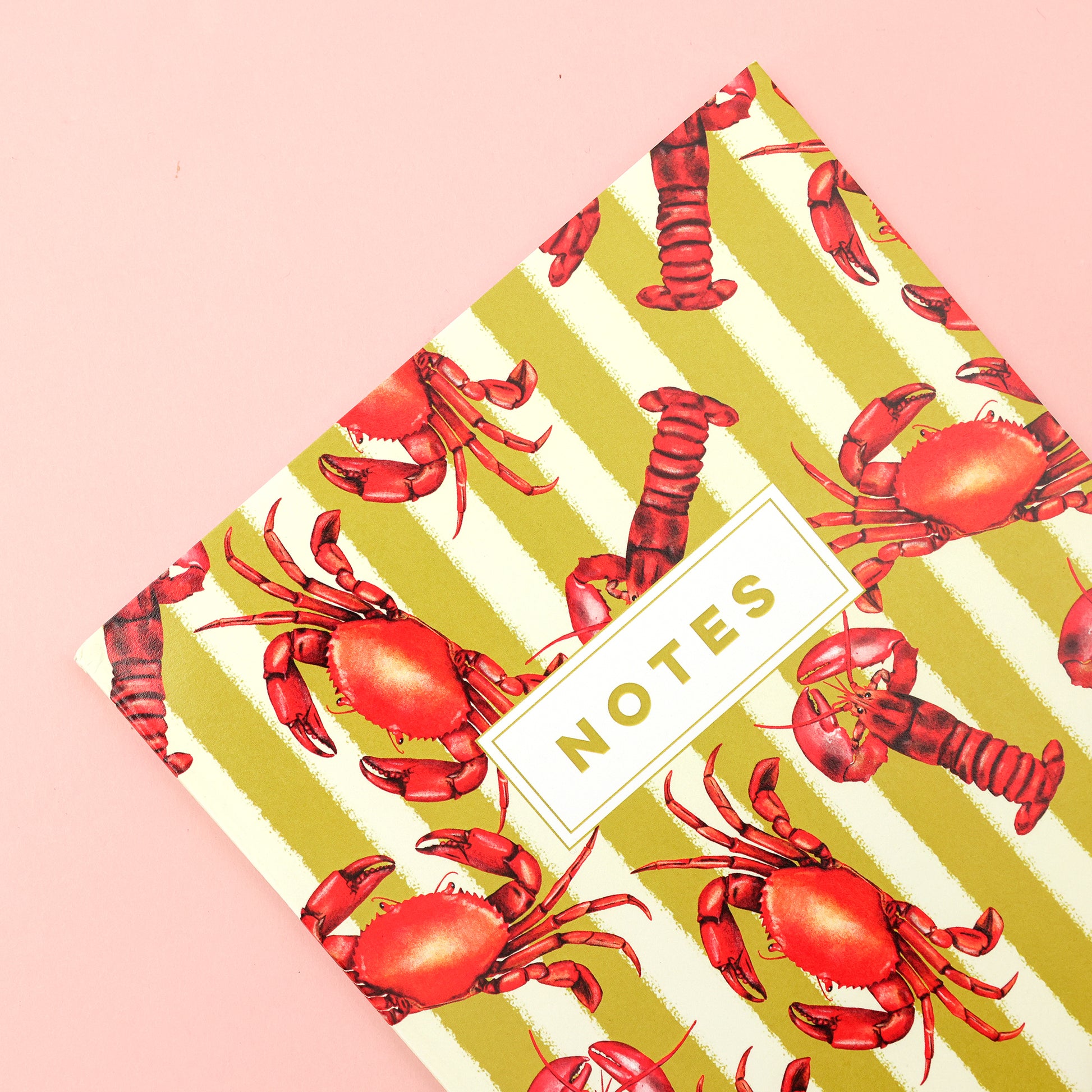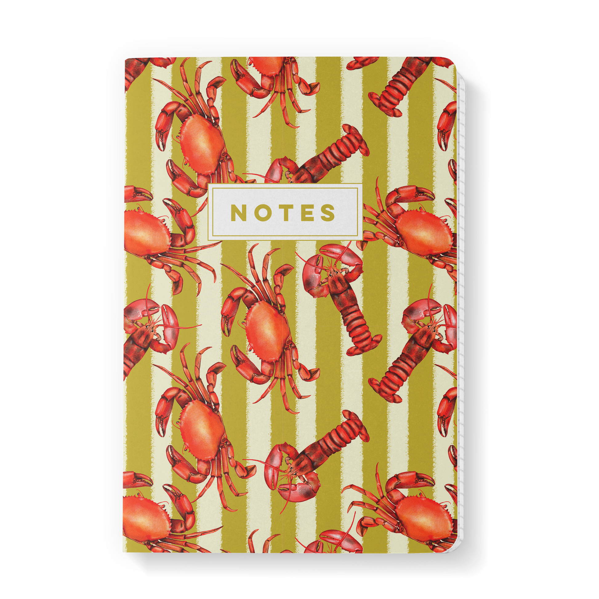 Inspired by sunny seaside days and the charm of Mediterranean markets, our Frutti De Mare Notebook features a vibrant pattern of lobsters and crabs on golden stripes — a nod to coastal adventures, seafood suppers, and summer sketching.