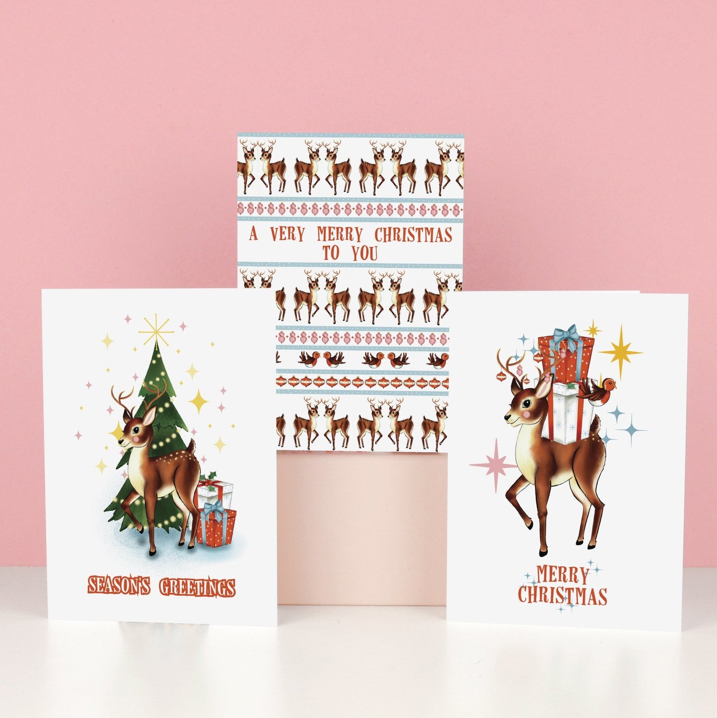 This cute little reindeer is here to hope you have a lovely Christmas! It's inspired by the mid-century kitsch and retro illustrated christmas cards from the 50's because we love a bit of nostalgia!